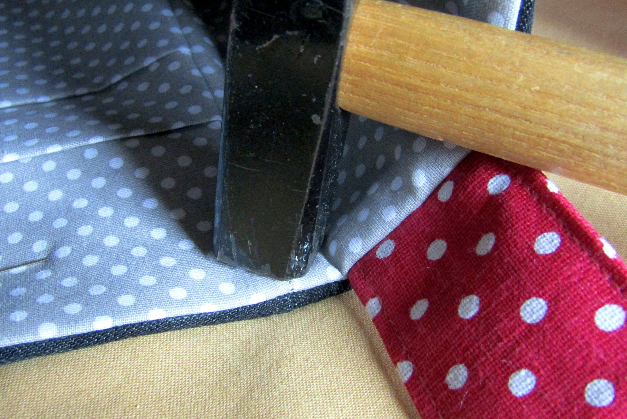 Egy kis feszültség levezetés 🙂 jó nagyokat csapkodjuk azzal a kalapáccsal! Hogy mennyit? Amennyit kell .. én úgy 5-6 ütést szoktam adni neki. Az anyagra tehetünk egy szövet darabot, hogy védjük.