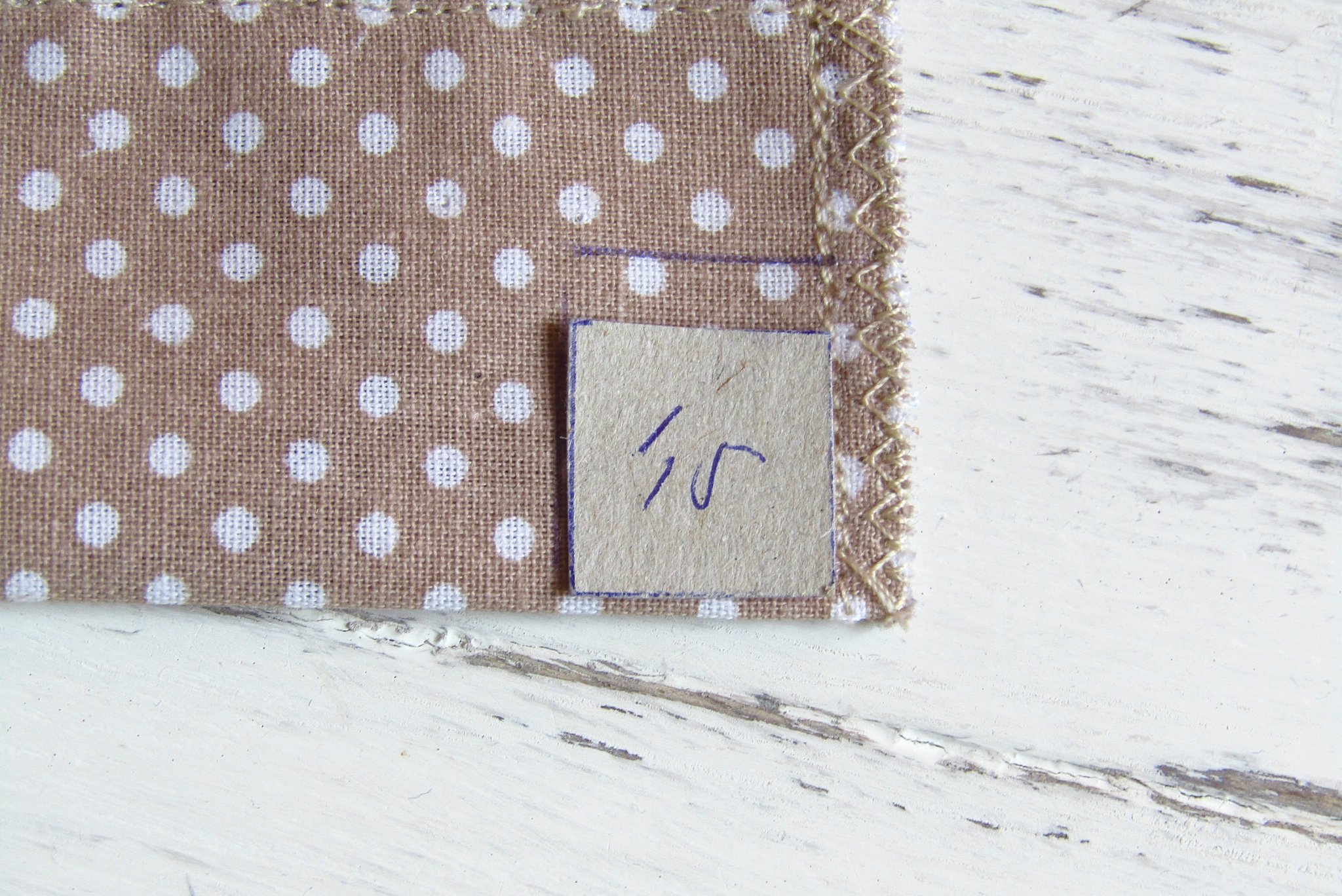 1,5 cm x 1,5 cm kockát használok, és az egyik oldalát a varráshoz teszem, a másik oldalát pedig az anyag széléhez. Rajzold körbe. Ezt ismételd meg mind a 4 saroknál, mind két oldalon. (8x)