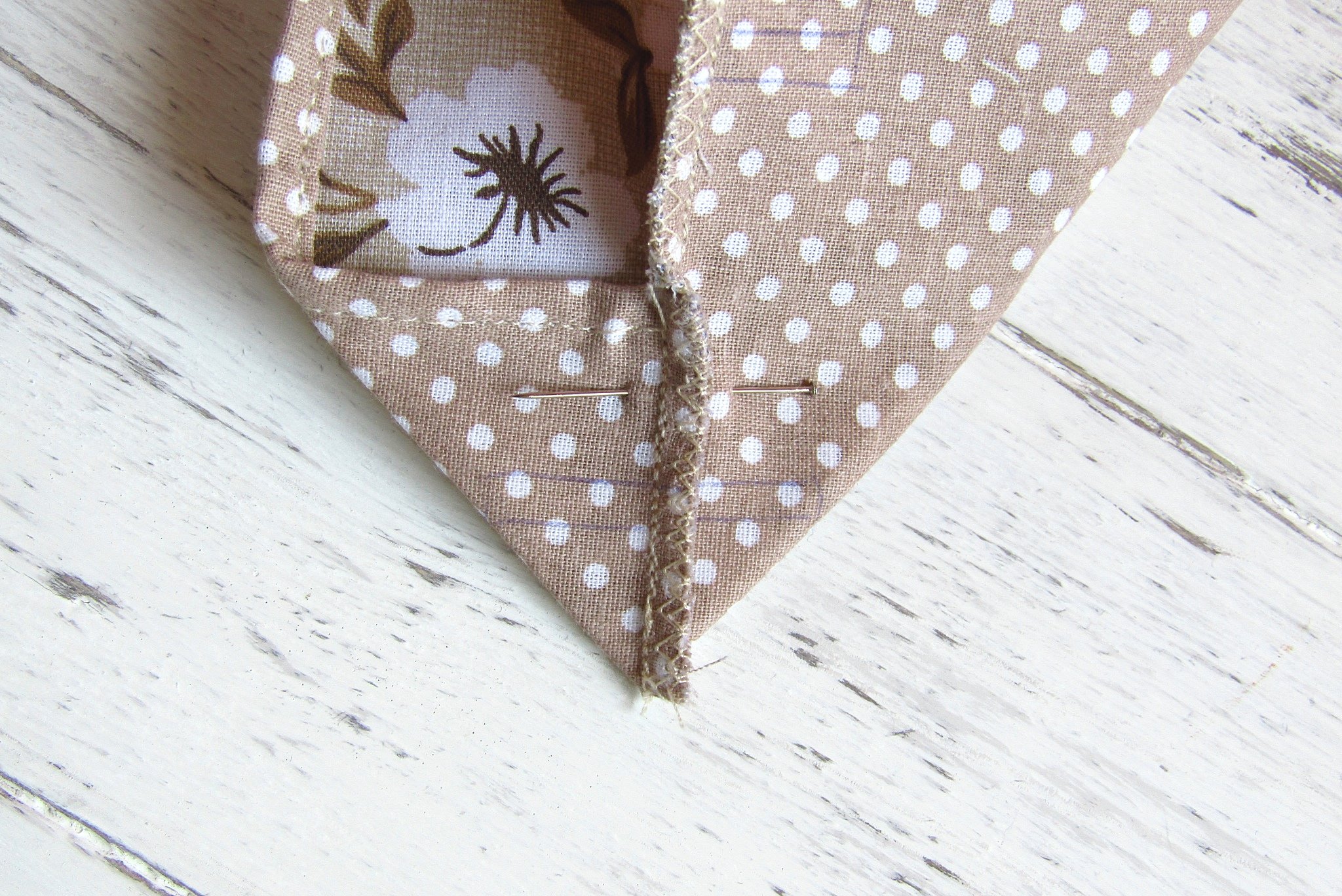 Mikor az azonos oldalon lévő sarkokat varrod figyelj, hogy a varrott szél ugyan oda legyen “elhajtva” mint a másik. Ennek is pusztán esztétikai oka van. Csak mert így jobban mutat 🙂